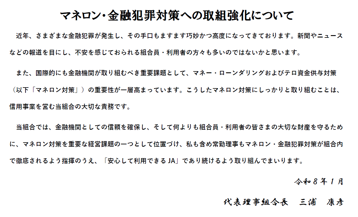 【shinyou・tiiki・kumiaiin・】マネロン・金融犯罪対策への取組強化について